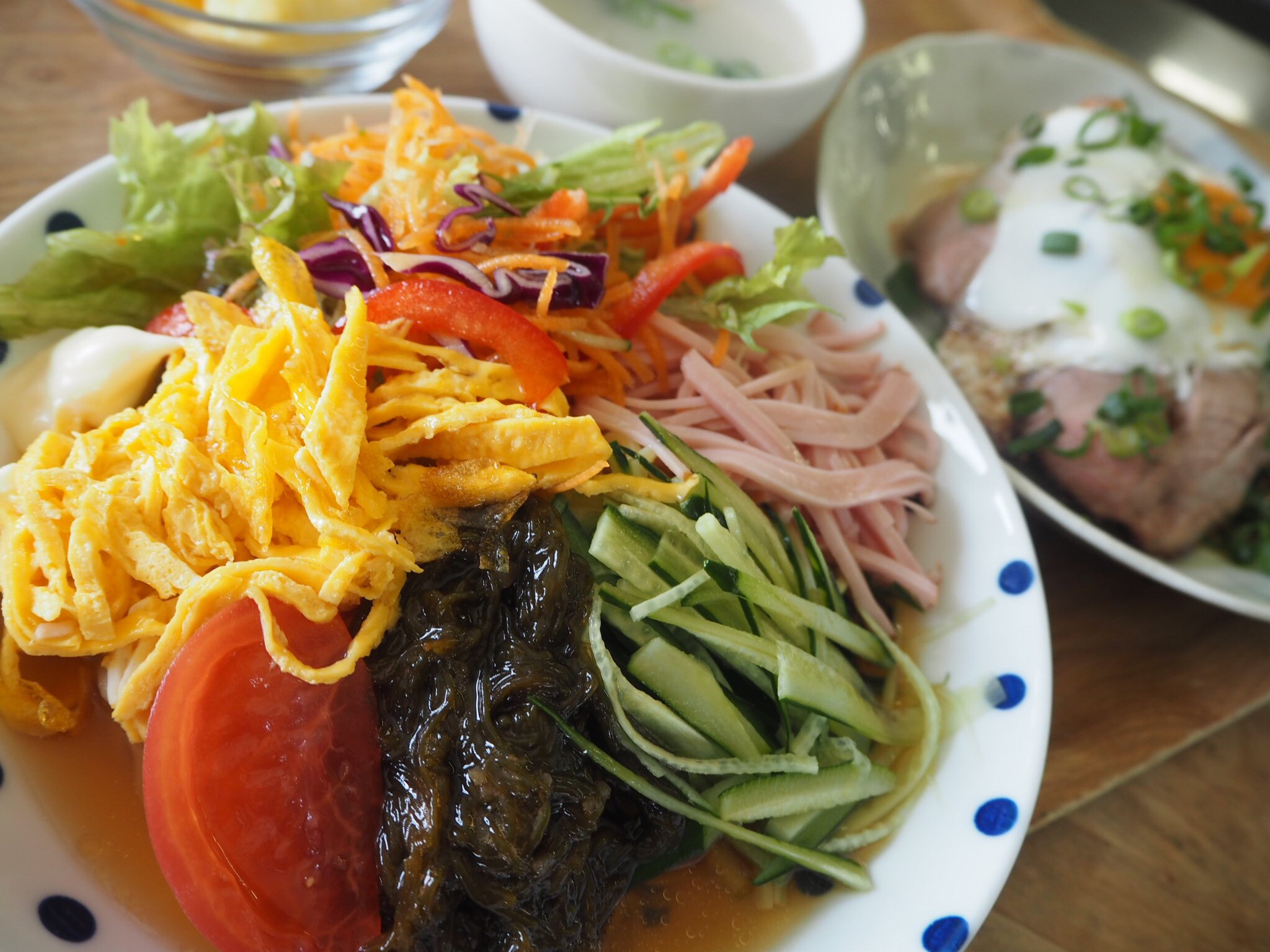 色とりどりの夏野菜にハムや卵などのタンパク質も取れるので、素麺やうどん、そばなどに偏りがちな夏でも、簡単にバランスの取れた食事ができます。